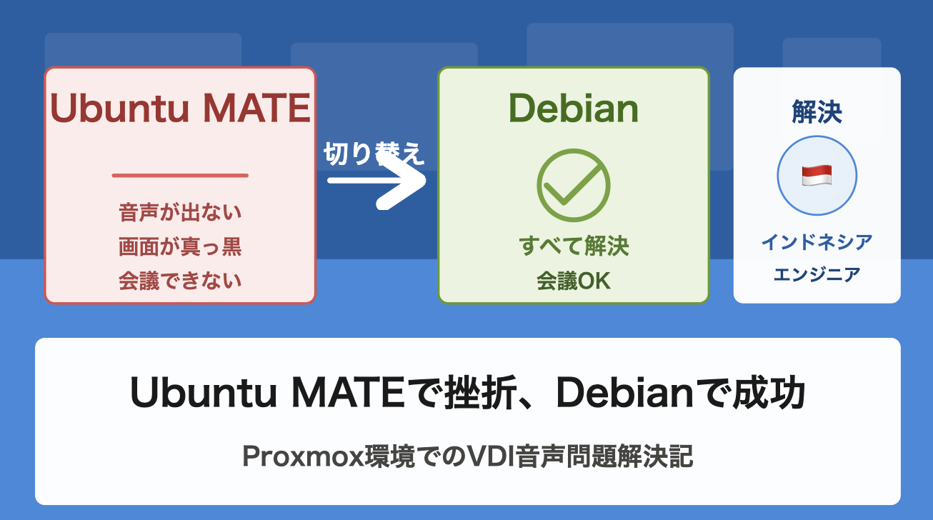 Ubuntu MATEで挫折、Debianで成功Proxmox環境でのVDI音声問題解決記