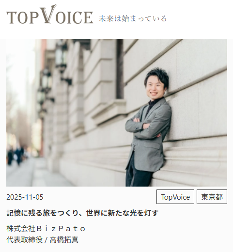 今回、新たに掲載されたのは「株式会社BizPato(以下:BizPato)」の代表取締役を務める、高橋拓真様のインタビュー記事です。