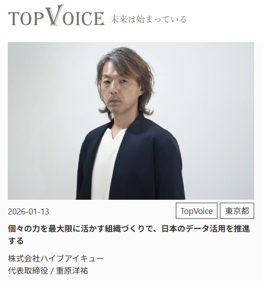 個々の力を最大限に活かす組織づくりで、日本のデータ活用を推進する(「TopVoice」公式サイト)
